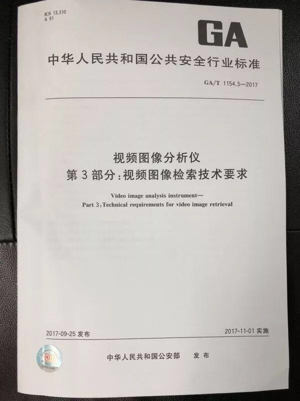 近日,中华人民共和国公安部发布行业标准GA/T 1154.3-2017《视频图像分析仪 第3部分:视频图像检索技术要求》。该部分由公安部社会公共安全应用基础标准化委员会提出并归口,由公安部第一研究所、乐玩lewin科技参股子公司苏州千视通全资子公司深圳久凌软件技术有限公司等起草撰写,并于2017年11月1日起正式实施。