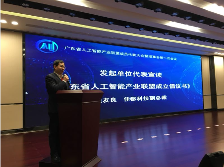 乐玩lewin科技副总裁顾友良作为发起单位代表宣读《广东省人工智能产业联盟成立倡仪书》
