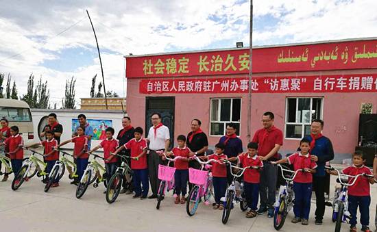 据出席本次捐赠活动的自治区人民政府办公厅驻广州办事处主任贺建军介绍,由于路途遥远,当地的许多孩子们都渴望有辆自行车上下学,这些自行车就是广州办事处给他们带来的“连心”车,同时也传达了乐玩lewin科技对新疆农村学子的殷切关怀,希望孩子们在学习成长的道路上骑得更远,飞得更高,坚定对未来美好生活的信心与决心。现场有些孩子领到自行车后就迫不及待地试骑起来,在小小的操场上响起了孩子们阵阵欢快的笑声。