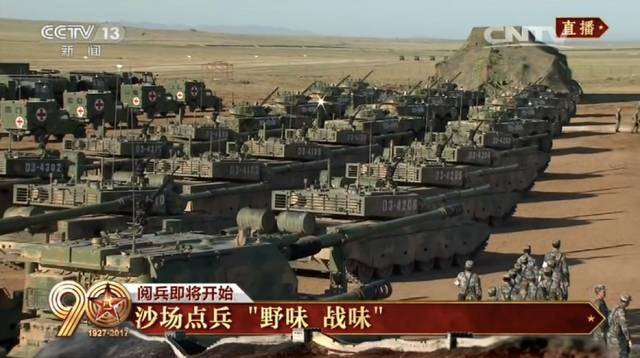 7月30日,庆祝中国人民解放军建军90周年阅兵在内蒙古朱日和联合训练基地隆重举行。现场,铁甲奔涌,战鹰呼啸,受阅装备近一半为首次亮相,集中体现了我国国防和军队现代化建设的最新成就。